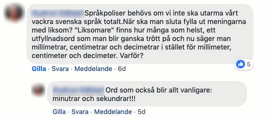 Men alla förfasar sig inte, utan anar språklig utveckling där andra enbart ser tokigheter. Monica skriver att ”det kanske är så att vi inte kan acceptera språkets utveckling - om man nu kan kalla det så”.